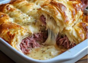 The Reuben Crescent Bake is a delightful twist on the iconic Reuben sandwich, transforming its rich flavors into an easy-to-make, oven-baked dish. This recipe layers tender corned beef, tangy sauerkraut, melty Swiss cheese, and creamy Thousand Island dressing between flaky crescent roll dough. Whether you’re preparing it for a family dinner, a potluck, or a game day snack, this comforting dish is sure to impress!