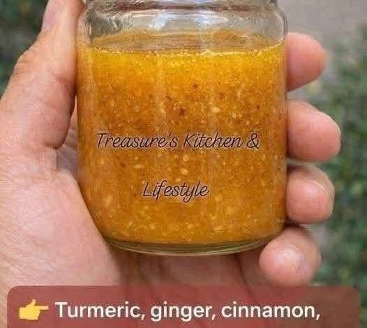 Turmeric, ginger, cinnamon, lemon juice, and raw honey.